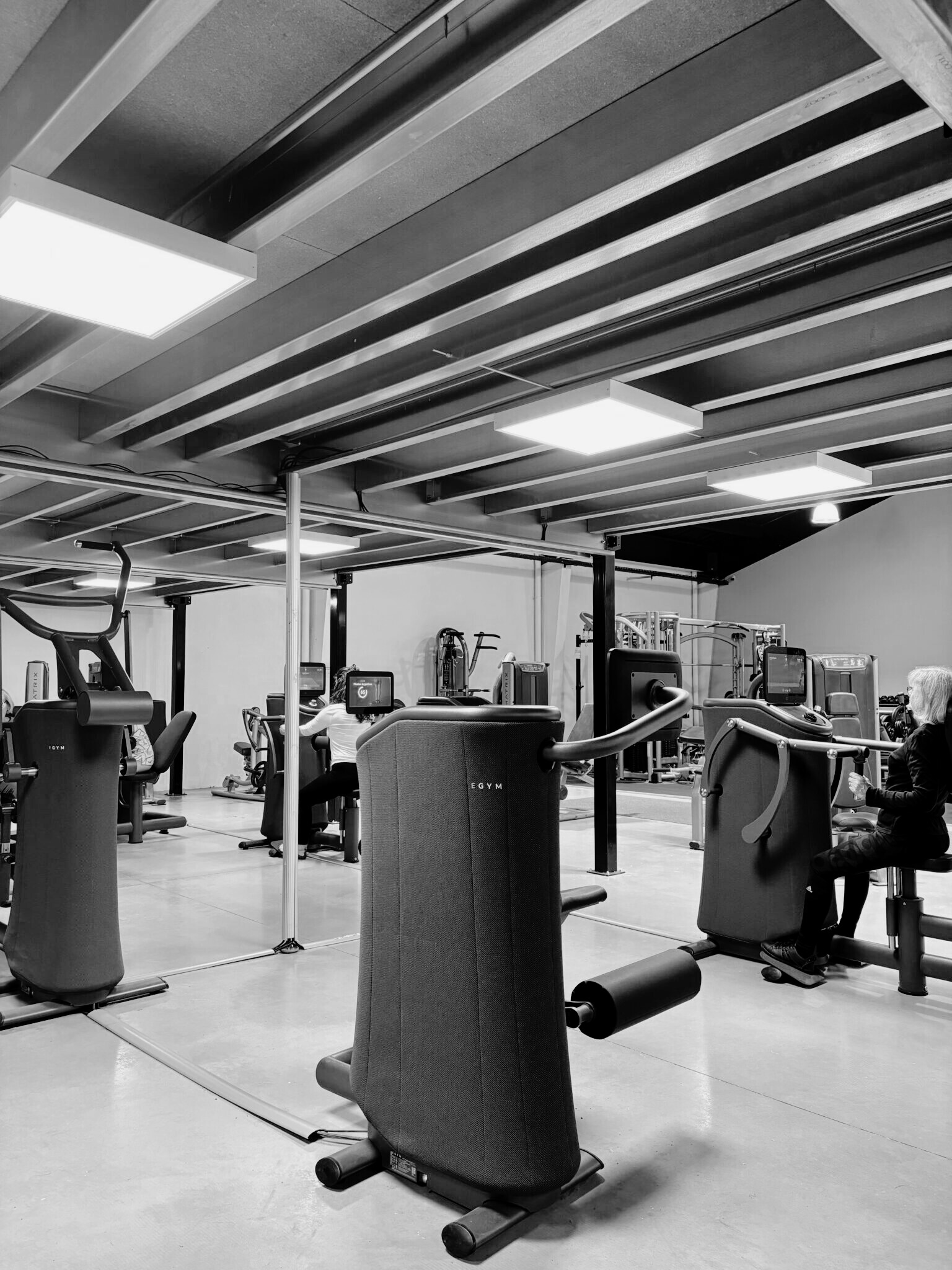 Tu pourras y trouver un étage cardio en mezzanine, un plateau poids libre, un espace machine guidé ainsi que notre circuit EGYM.